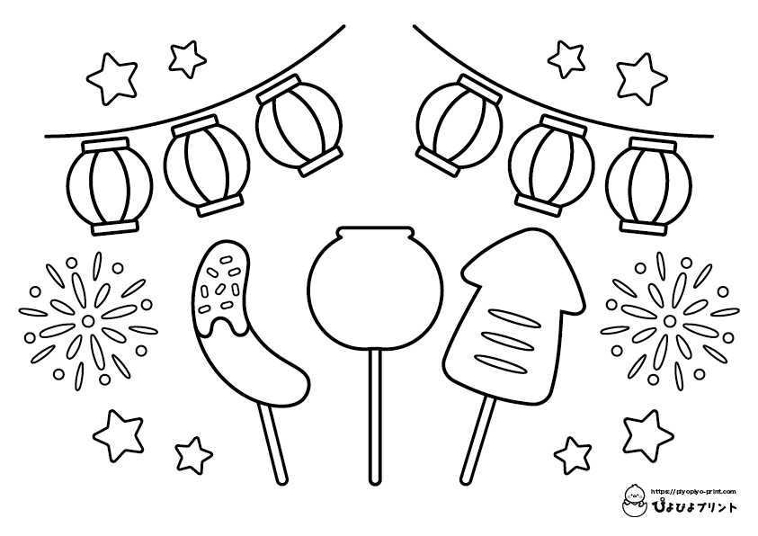 夏ぬりえ 夏祭りぴよぴよプリント。