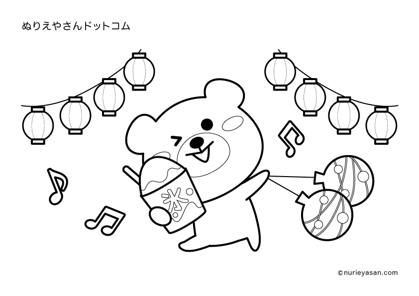 クマちゃんの夏祭り」の塗り絵 - ぬりえやさんドットコム。