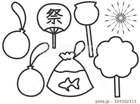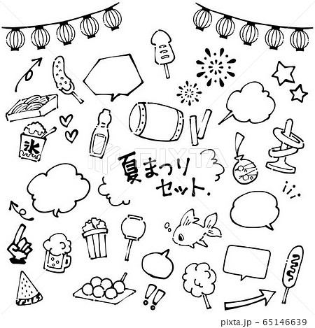手描き ポップで可愛い夏祭りのイラスト素材の線画のイラスト素材65146639- PIXTA。
