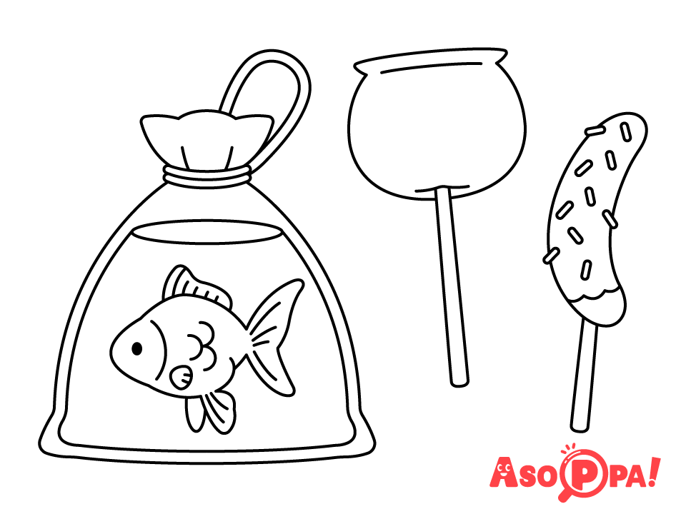 ぬりえ 季節夏祭りの金魚・りんご飴・チョコバナナ 無料ダウンロードOKな塗り絵です ASOPPA!レシピ - あそっぱ。
