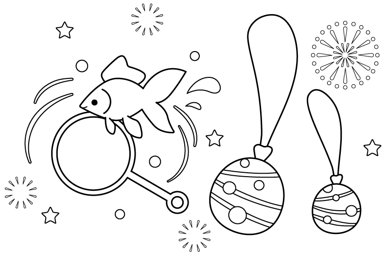 7月・8月におすすめお祭りぬりえ 縁日アイテム 高齢者・子供向け。