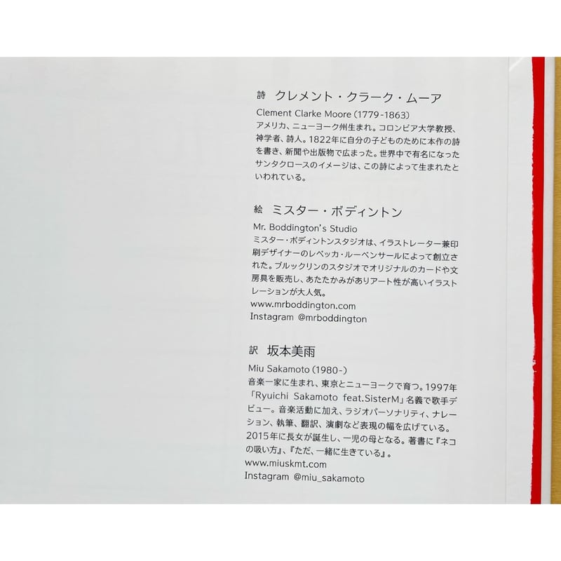 訳者サイン入り 『クリスマスのまえのよる』クレメント・C・ムーア 詩 、 ミスター・ボディントン 絵、坂本美雨 訳Lounge Bbooks。