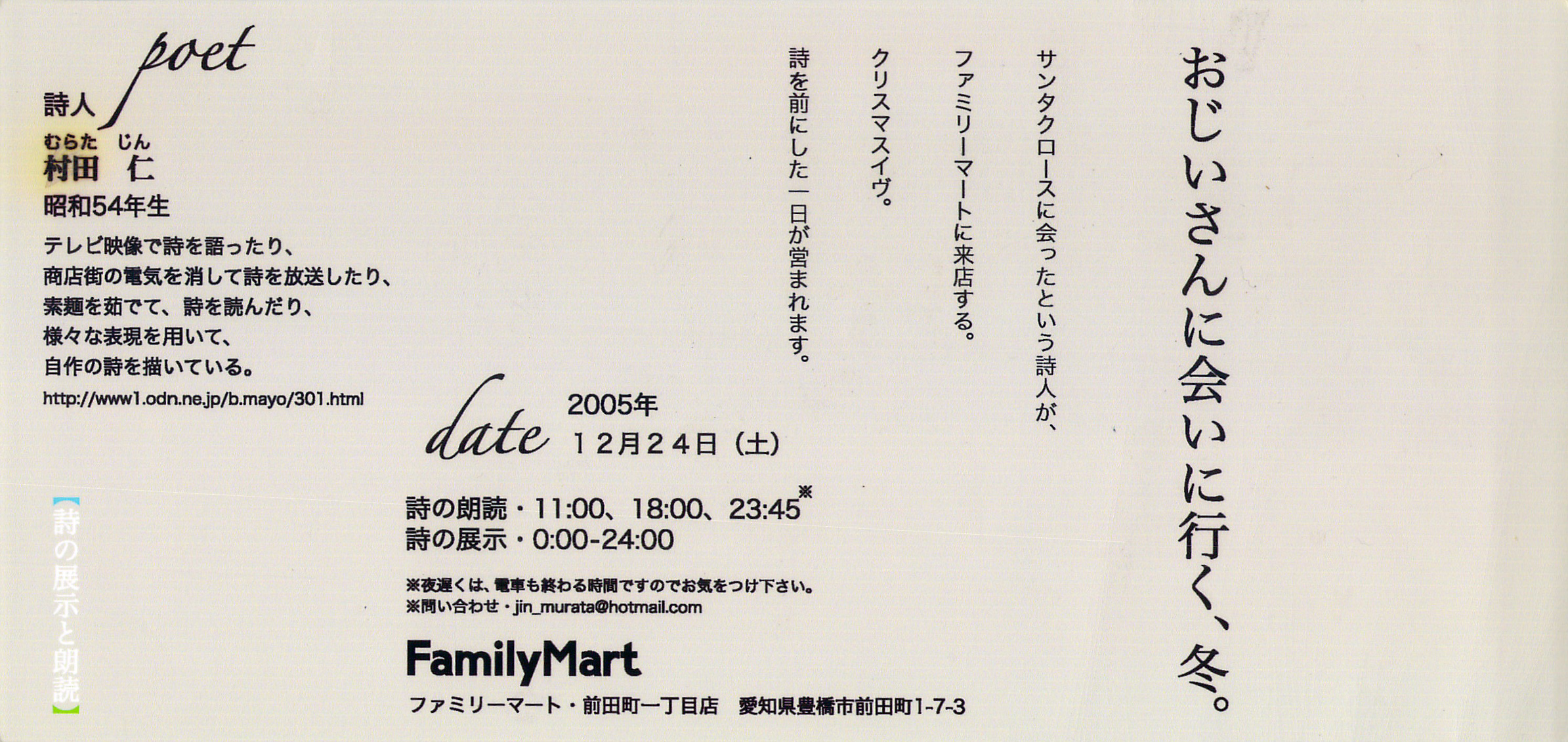クリスマス 12月 におすすめの詩2選♪~中上哲夫、セリザワケイコ横山ゆみ 詩・よこやま書店店主。