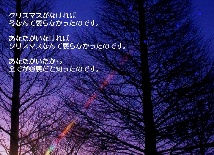 メリークリスマス 写真詩によせて- 私のタカラモノ。