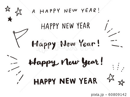ハッピーニューイヤーの手書き文字のイラスト素材60809142- PIXTA。