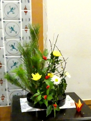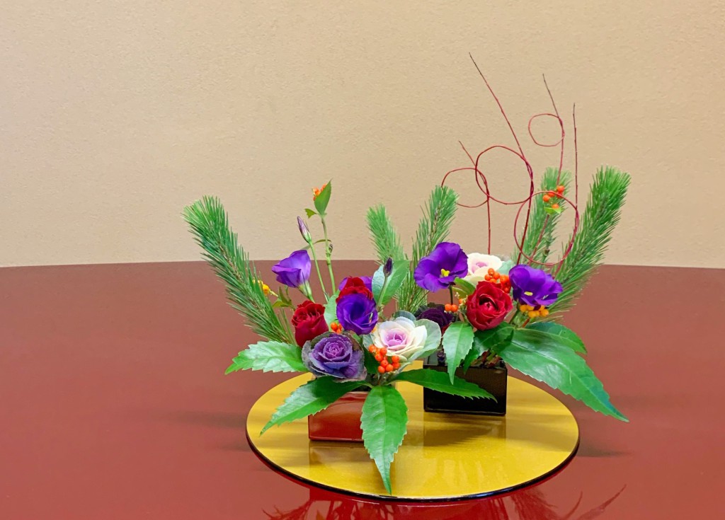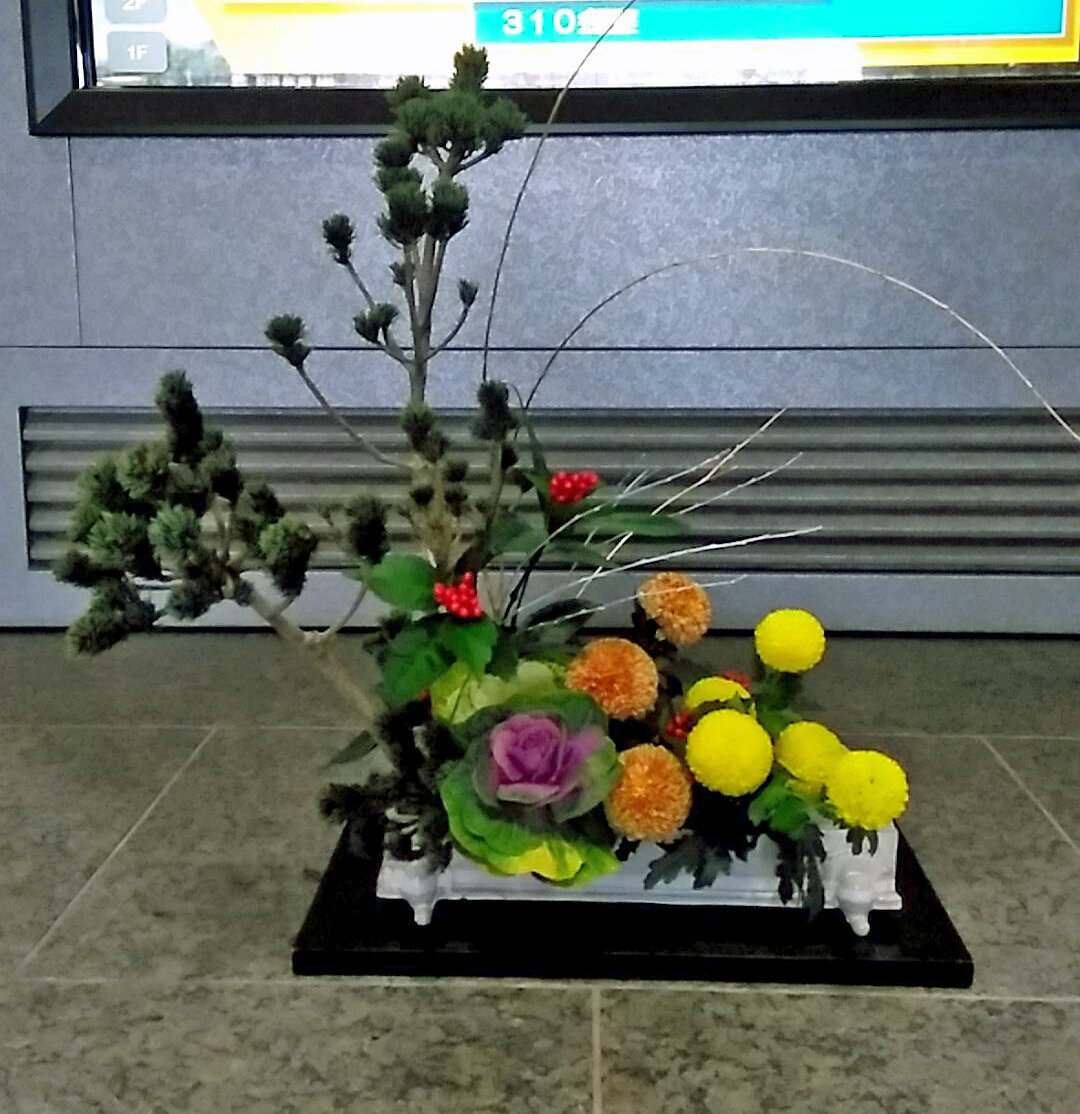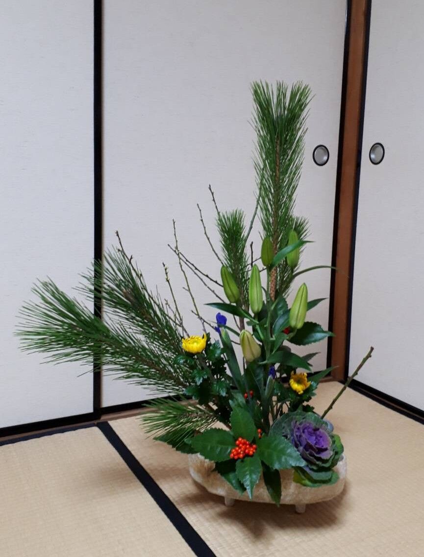 お正月花と池坊いけばな作品QUEENS FLOWER クイーンズフラワー。千葉県の船橋駅前で英国式フラワーアレンジメントと池坊いけばな の教室と花屋の話。