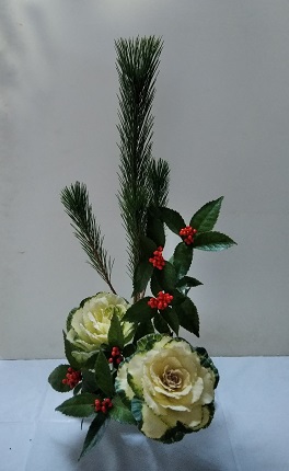 簡単生け花・お正月花 _2作品葉ボタンとゆり_簡単お正月花の生け方_Ikebana。
