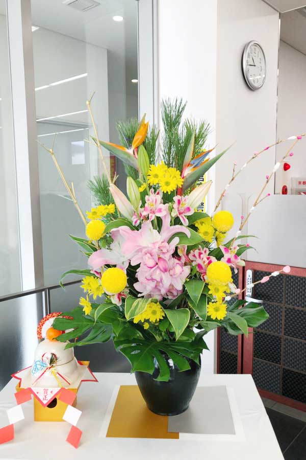 お正月用生け花 モダンな和風の盛花は玄関やリビングにお花選びのコンシェルジュ。