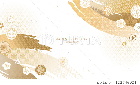 正月のデザイン素材。金色の金箔をあしらった、和柄のテンプレート。わびさびを感じる背景。204891896- イメージマート。