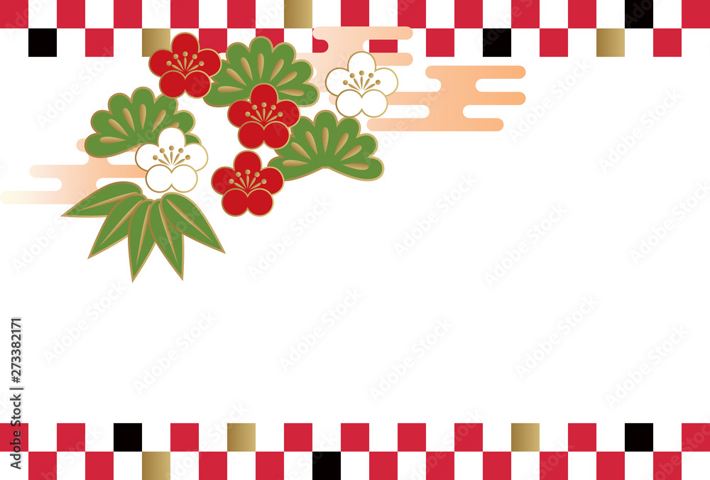 日本の正月背景デザイン 梅と菊と松のイラスト素材231547052- イメージマート。