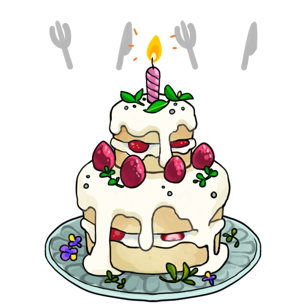 かわいいニヤリとする誕生日ケーキのイラスト素材無料ダウンロード IllustCute。