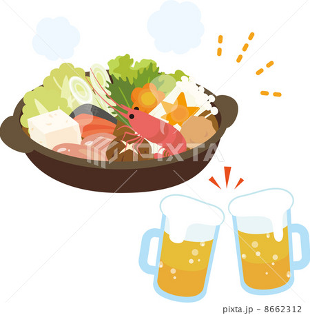 忘年会のイラスト「鍋とビールで乾杯!」: ゆるかわいい無料イラスト素材集。