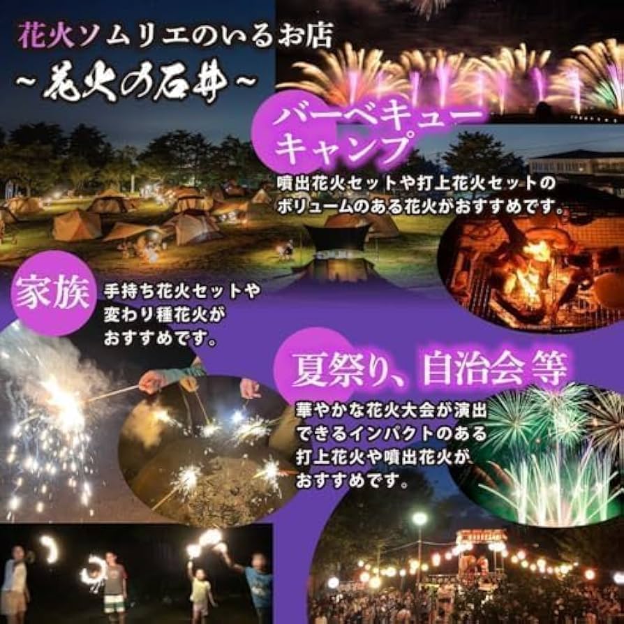 花火は、夏の風物詩です。手持ち花火や打ち上げ花火など、っ多数の商品ご用意いたしました。イベント応援団。