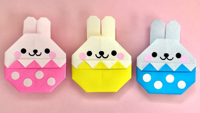 折り紙折り紙1枚で簡単 ! 可愛い うさぎのイースターエッグ 折り方うさたま イースターバニー 春 Origami Easter Egg。