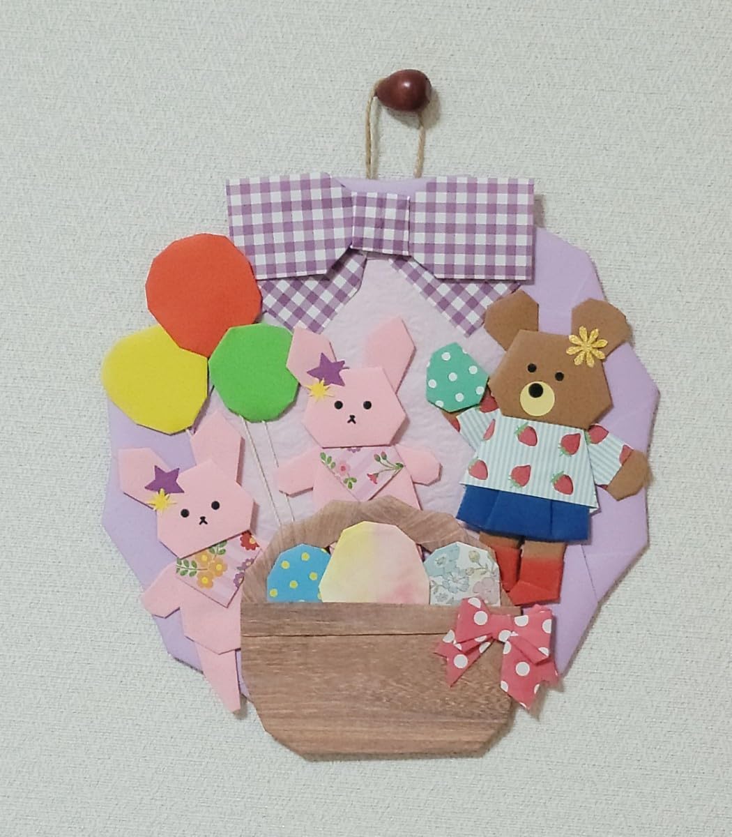 壁面飾り ハンドメイド 折り紙春イースターうさぎプレゼント。