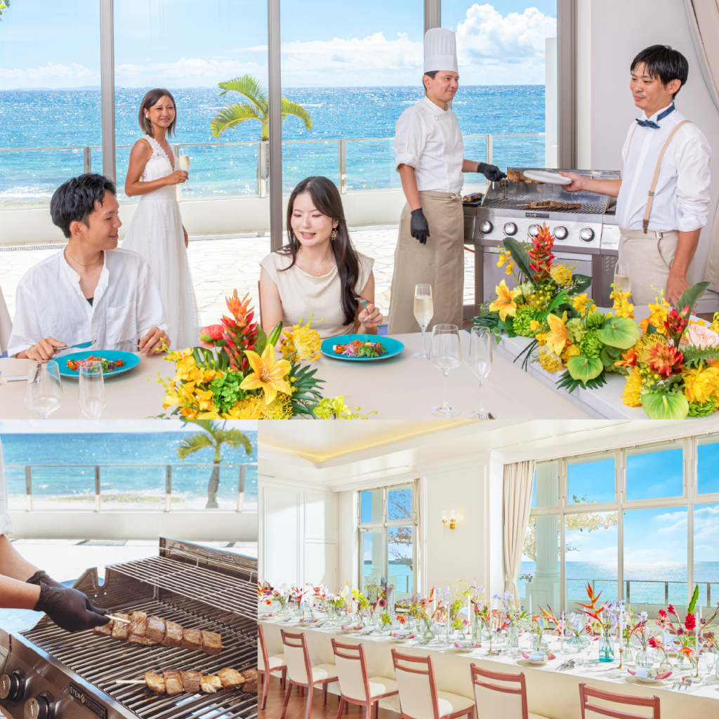 挙式込み ビーチが目の前のアコウの間でのBBQパーティホテル百名伽藍沖縄県の結婚式場。