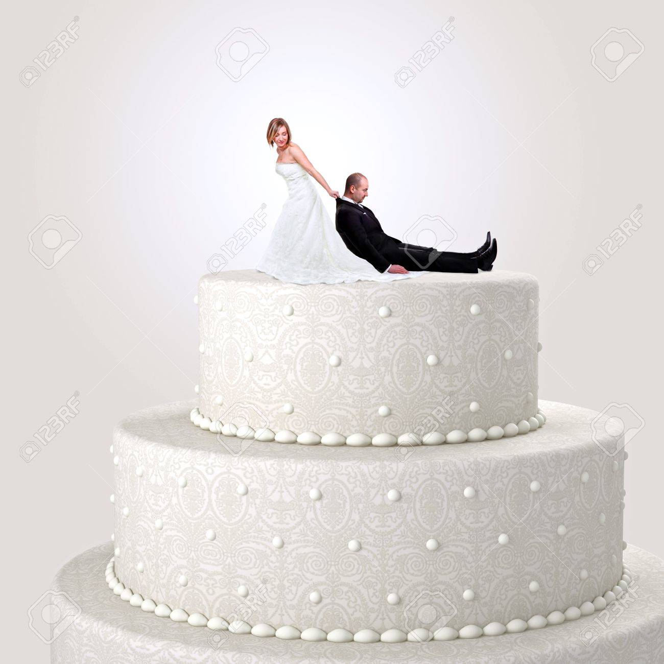 新郎新婦と面白いケーキ トッパーの写真素材・画像素材 Image 17541970。