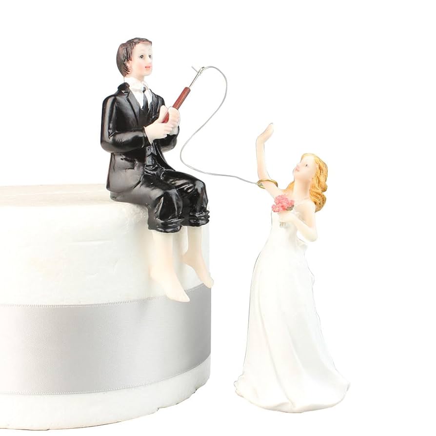 面白いウェディングケーキトッパー、花嫁ドラッググルームフィギュアケーキデコレーションウェディング 婚約パーティーウェディングカップルの。
