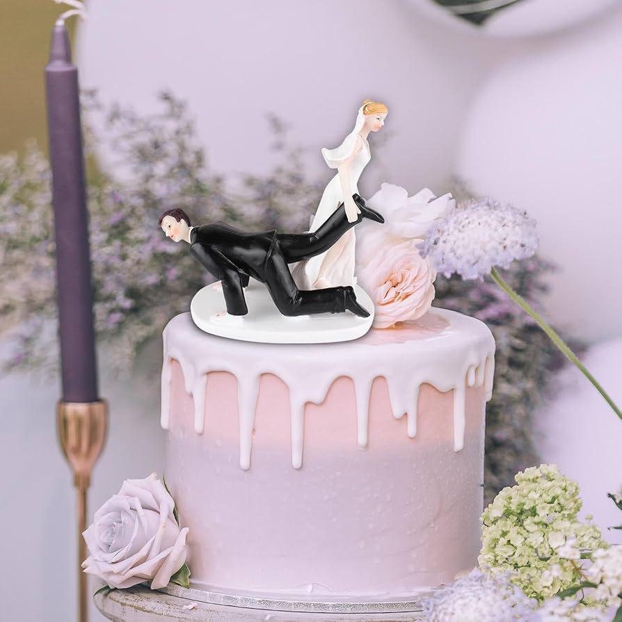 面白いウェディングケーキトッパー、花嫁ドラッググルームフィギュアケーキデコレーションウェディング 婚約パーティーウェディングカップルの置物像デスクトッ海外のお人形ウェディングケーキトッパーのデザインまとめmarry マリー。