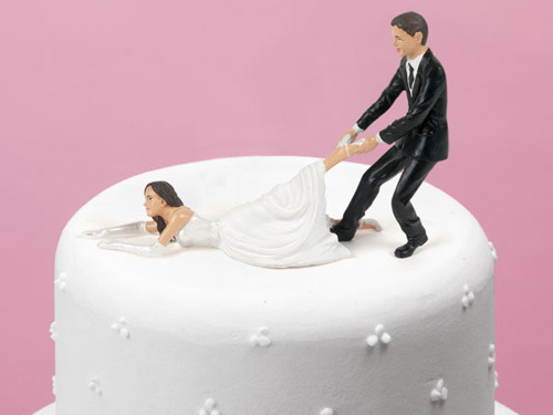 新品未使用 ケーキトッパー 結婚式 新郎新婦 面白 新郎を後ろから引っ張る新婦。
