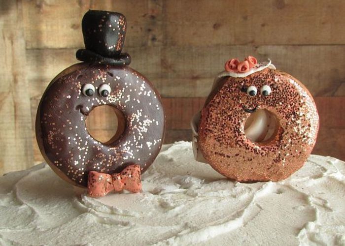 ウェディングケーキにドーナツの新郎新婦のケーキトッパー🍩「ドーナツ夫婦」って言うの知ってた?marry マリー。