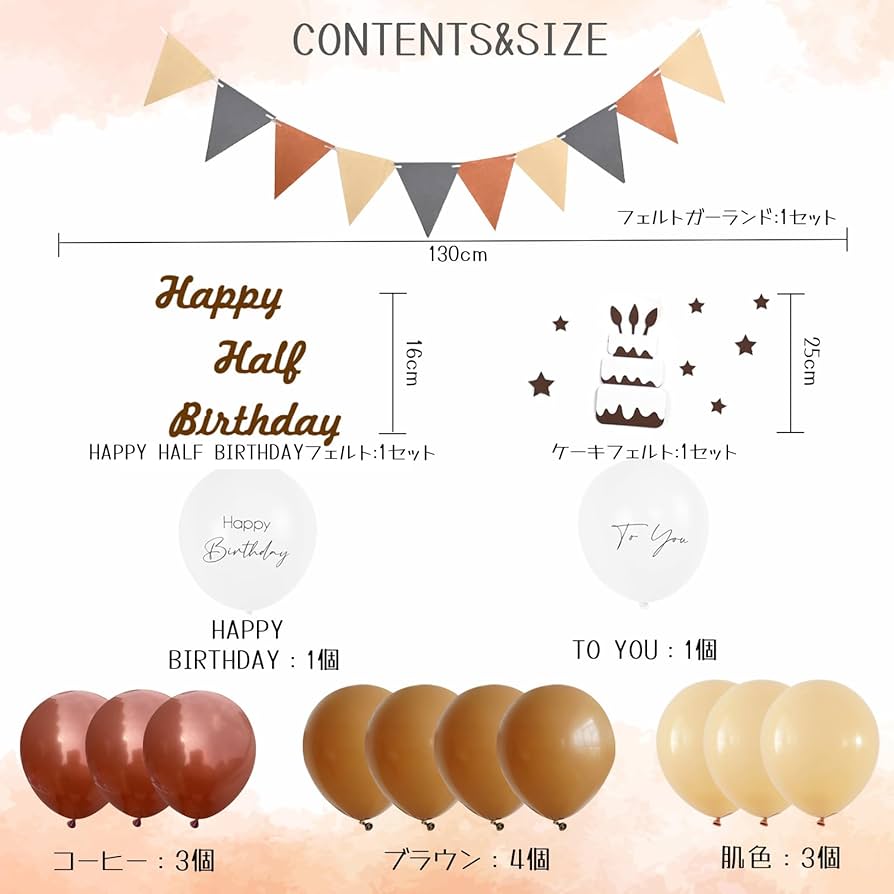 AmazonGRESATEK 誕生日 飾り付け 風船 バルーン happy half birthday ハーフバースデー 飾り フェルト 生地不織布 壁掛け フラッグ ガーランド 装飾 デコレーション お祝い パーティー 写真背景 インスタ映え セット 可愛い シンプル ベビー キッズ 子供女の子 男の子。