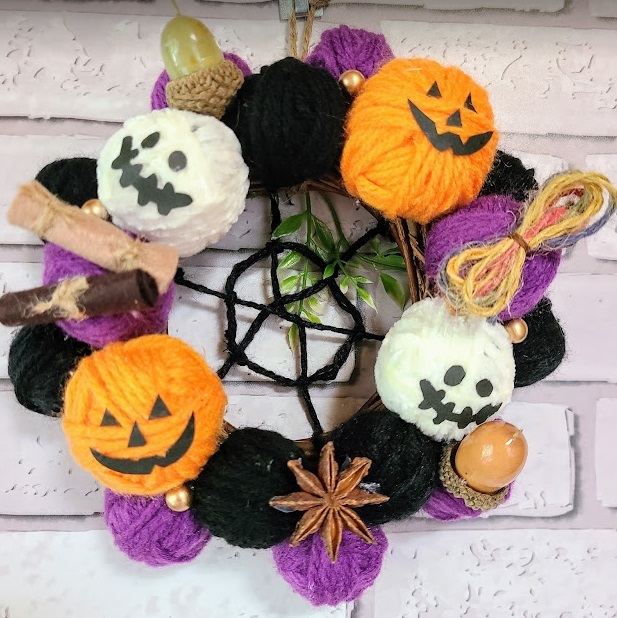ハロウィンリースを手作り♪毛糸のポンポンを使った作り方紹介かんたん工作・折り紙☆選り好み。