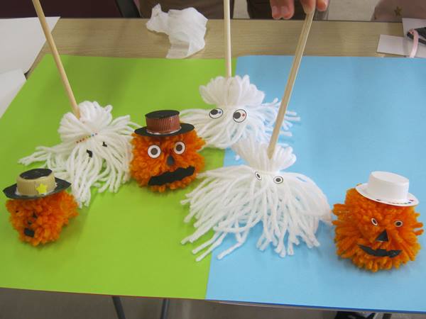 毛糸 de ハロウィン🎃工作万葉のさとは神奈川県川崎市と横浜市の溝の口,梶が谷,西寺尾,大口,青葉台にリハビリテーションデイサービス 通所介護高齢者向け住宅の介護施設,リハビリテーションをご用意しております。