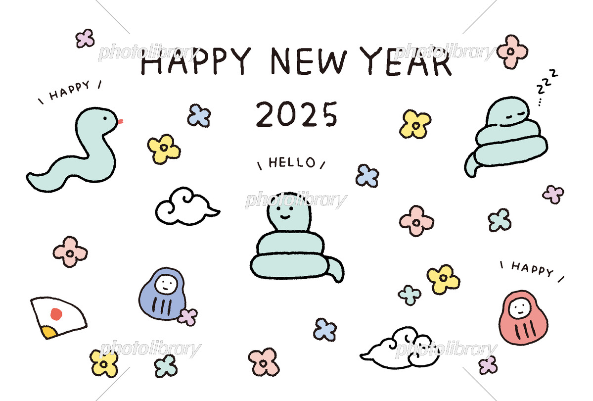 2025年巳年 かわいい年賀状イラスト261117120- イメージマート。