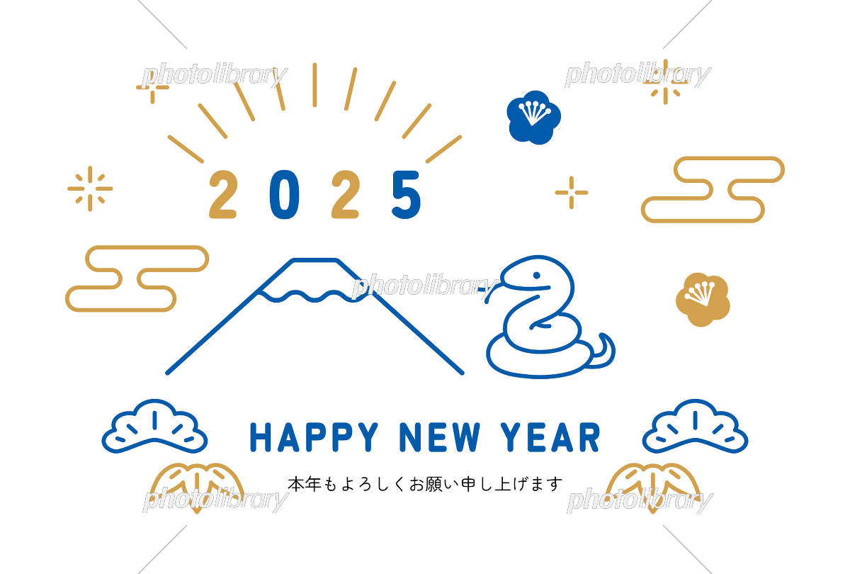 シンプルでかわいい巳年の年賀状 富士山とヘビイラスト素材7564126- フォトライブラリ。