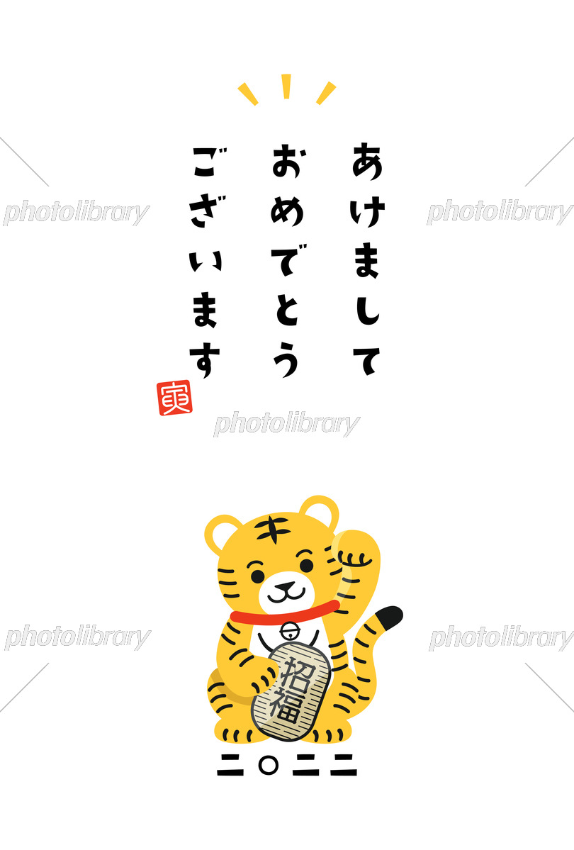 2022年 シンプルでかわいい年賀状デザイン カラーの招き虎 縦 イラスト素材6933929- フォトライブラリ。