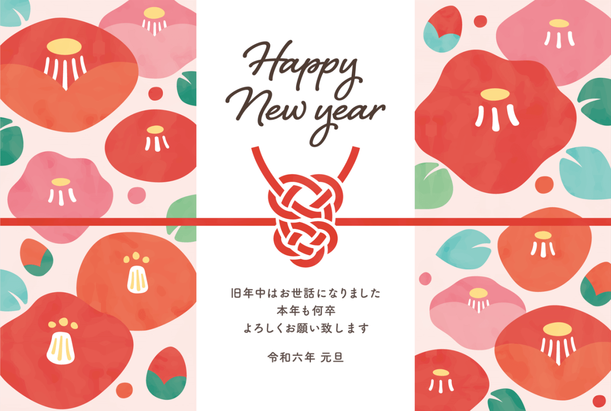 年賀状 2024年 辰年 無料デザインテンプレート 梅模様、かわいい柄園だより、おたよりで使えるかわいいイラストの無料素材集 イラストだより。