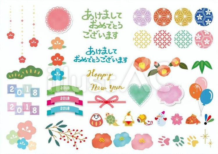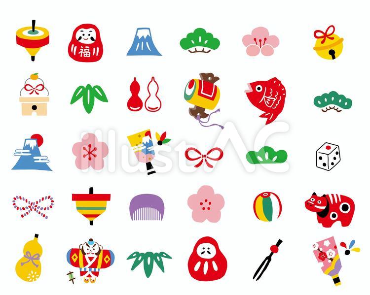正月・年賀状 イラスト素材セット:イラスト無料。
