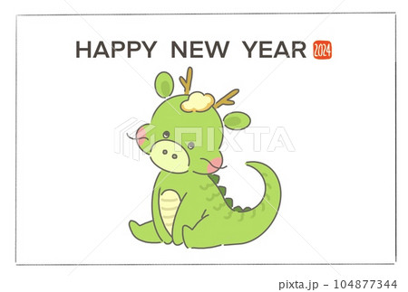年賀状 2024 辰年のイラストのかわいい年賀状のイラスト素材104877344- PIXTA。