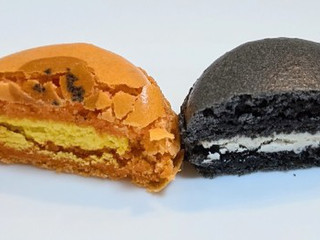 中評価 不二家 ハロウィンマカロン パンプキン味&バニラ味チョコチップ入の感想・クチコミ・商品情報 もぐナビ。