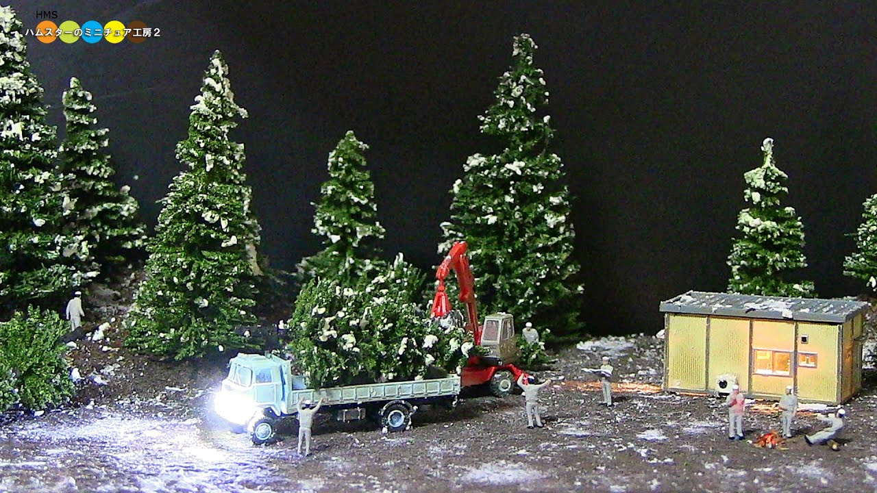 Diorama - Miniature Christmas Tree Farmミニチュア冬の風景作りクリスマスツリーの出荷作業をする人たち。