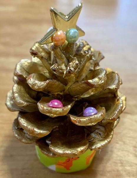 放課後子ども教室 かめっこクラブ クリスマス企画で、松ぼっくりツリーを作りました。 細かい作業の為、黙ってしまう子どもも多数😁 直接松ぼっくりにボンドを出す子、ビーズに1つ1つ丁寧にボンドを付ける子➡️指がボンドだらけ🙀 自分で色々考えて、松ぼっくりツリー。