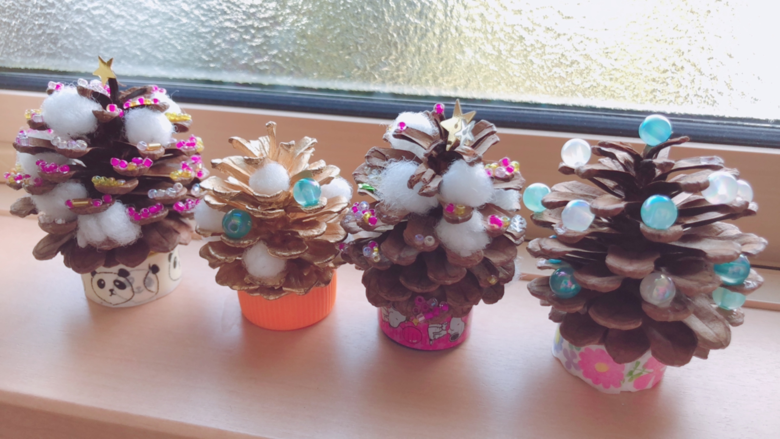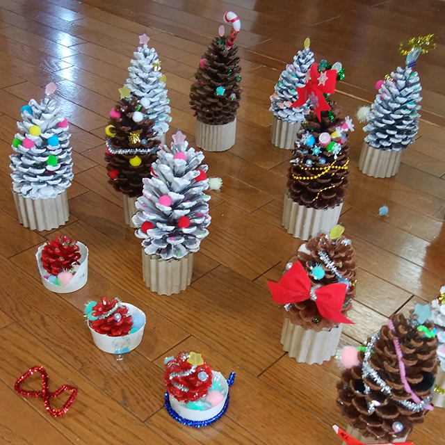 まつぼっくりのクリスマスツリーを作ったよ! - 瀬戸桜保育園。
