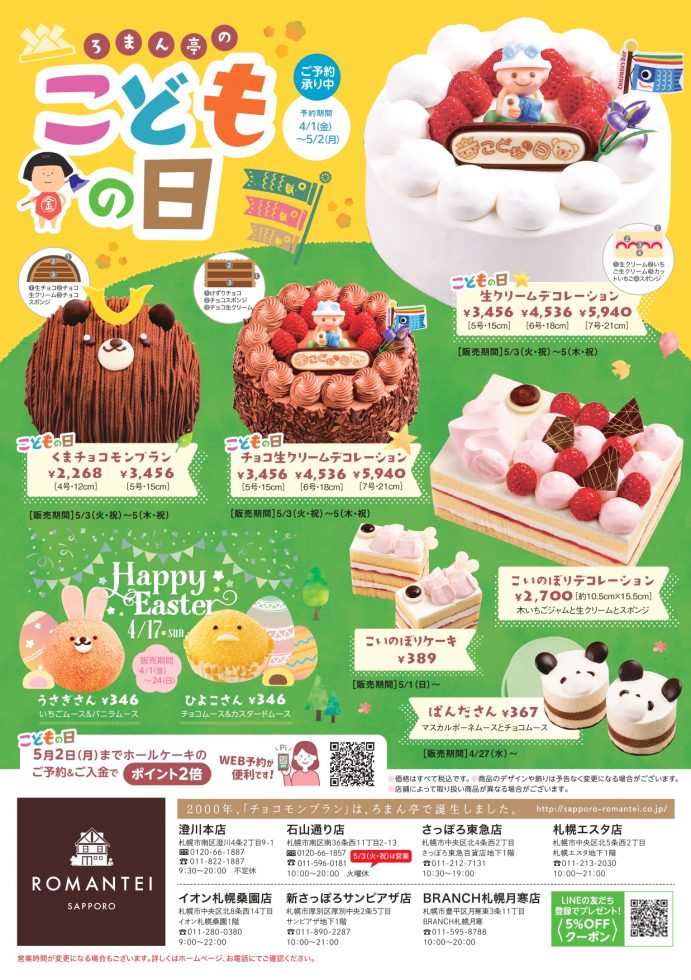 ろまん亭にて『こどもの日ケーキ』が予約受付中!札幌リスト。