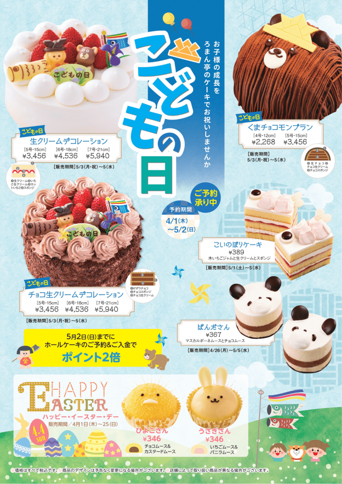 札幌ケーキ・贈り物・焼き菓子・カフェ - ろまん亭公式サイト 元気をお祝い!こどもの日。