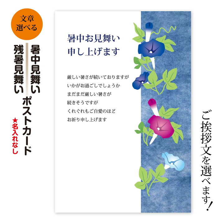 名入れ印刷 暑中見舞いはがき印刷 挨拶状 残暑見舞いはがき印刷 朝顔 s-034枚から枚数選択できます官製はがき 切手付私製はがき 切手なし 夏の挨拶状 暑中見舞い 残暑見舞い 名入れ 文房具・事務用品。