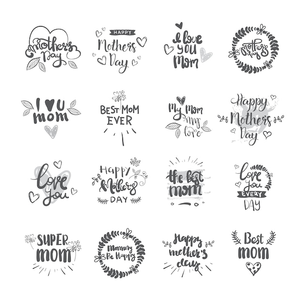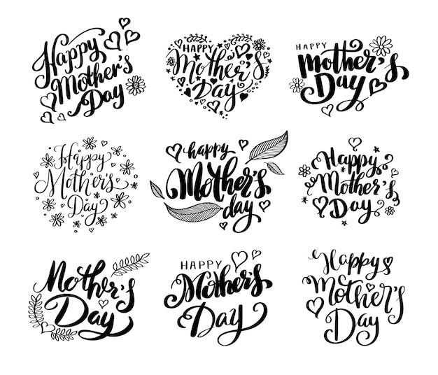 ハッピーマザーズデイカリグラフィーコレクション。Premiumベクトル素材。