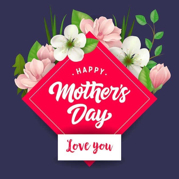 ハッピーマザーズデイラブユーレター。母の日のグリーティングカード。無料ベクトル素材。
