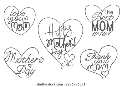 ハッピーマザーズデーの書道コレクション。 エレガントなグリーティングカード、ポスター、ペイント用の手書きの文字のセット。 フリーハンドの図面。現代のベクターイラスト。 白い背景に。」のベクター画像素材 ロイヤリティフリー1948634353Shutterstock。