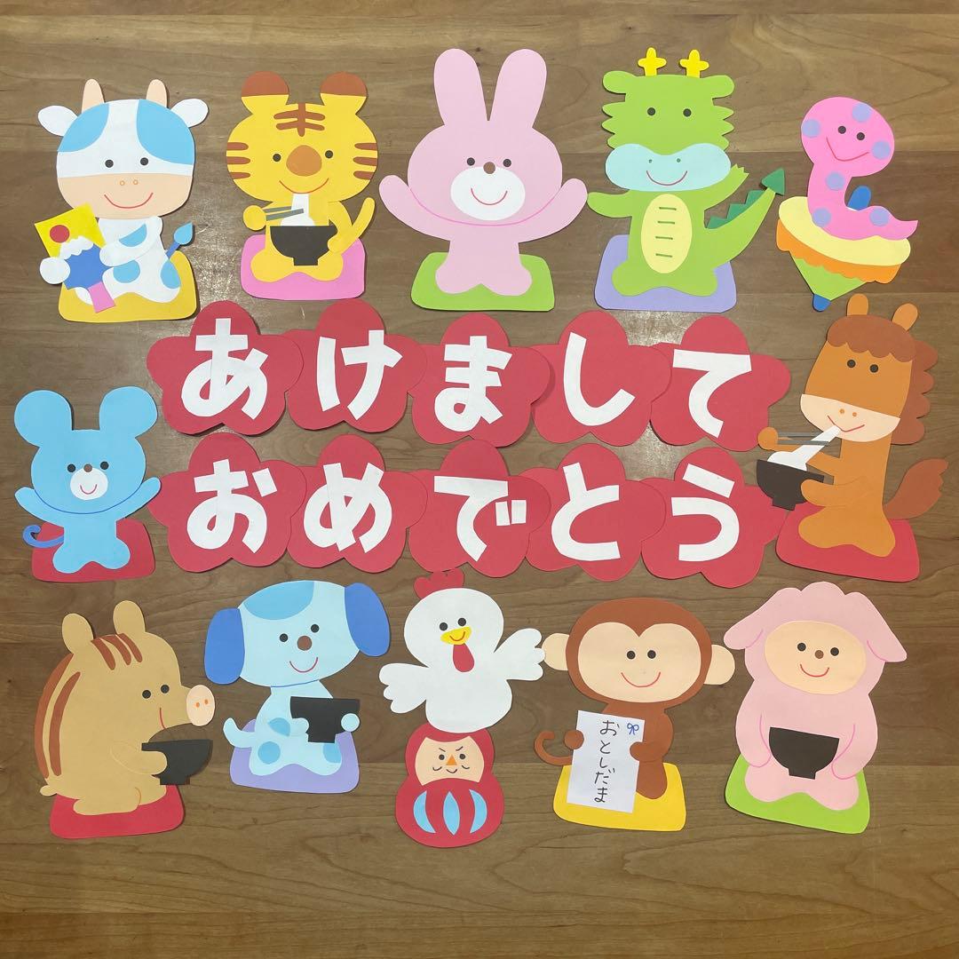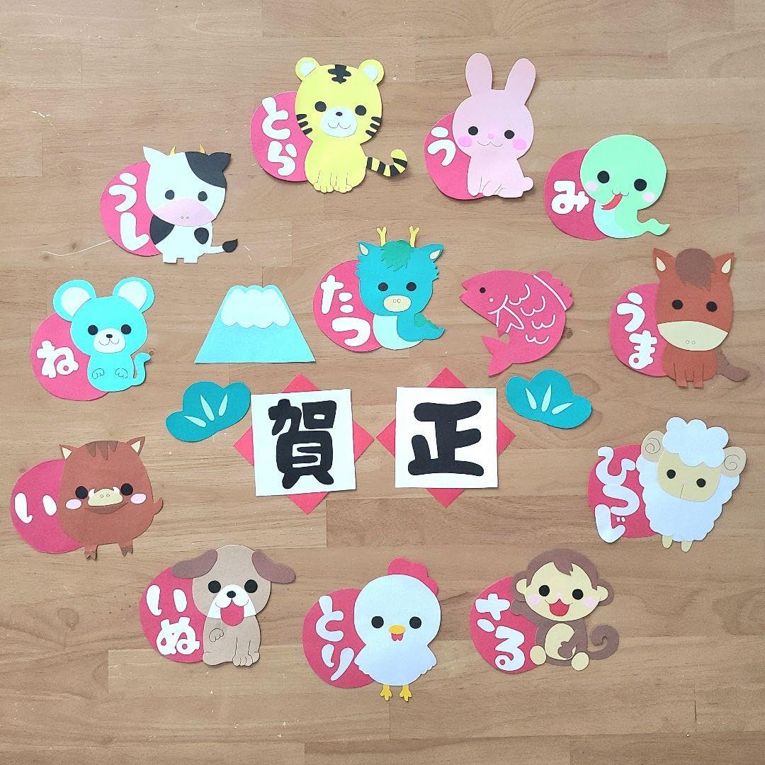 Amazon十二支 お正月壁面 壁面飾り 壁面装飾 保育 幼稚園正月飾りおもちゃ。