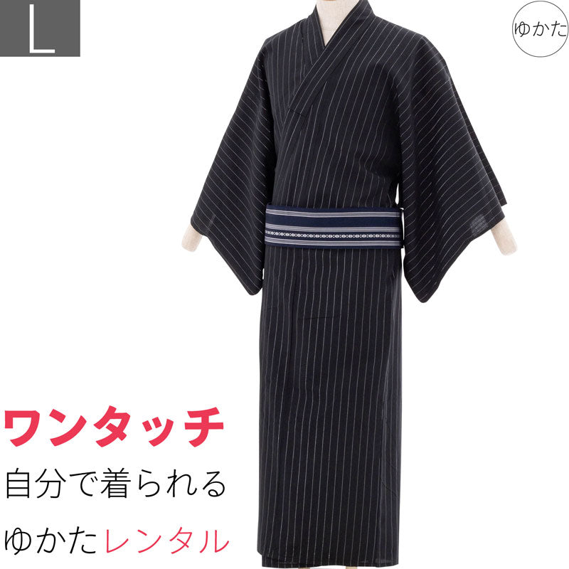 浴衣 男性 レンタル セット L メンズ 黒 銀糸縞 花火大会 夏祭り – みやこもん。
