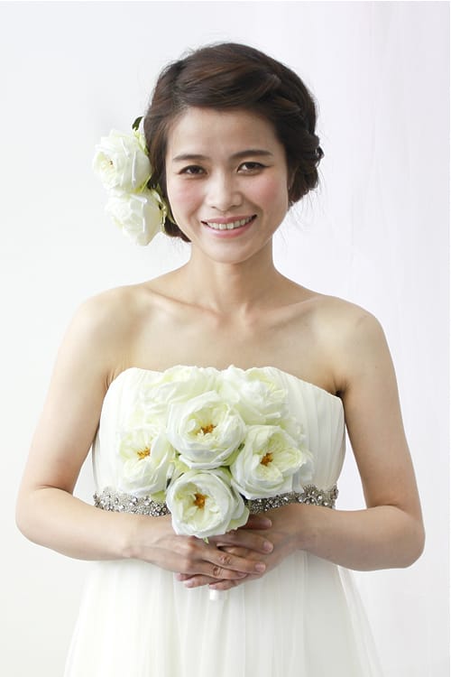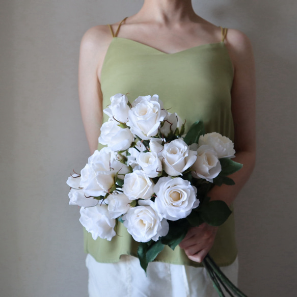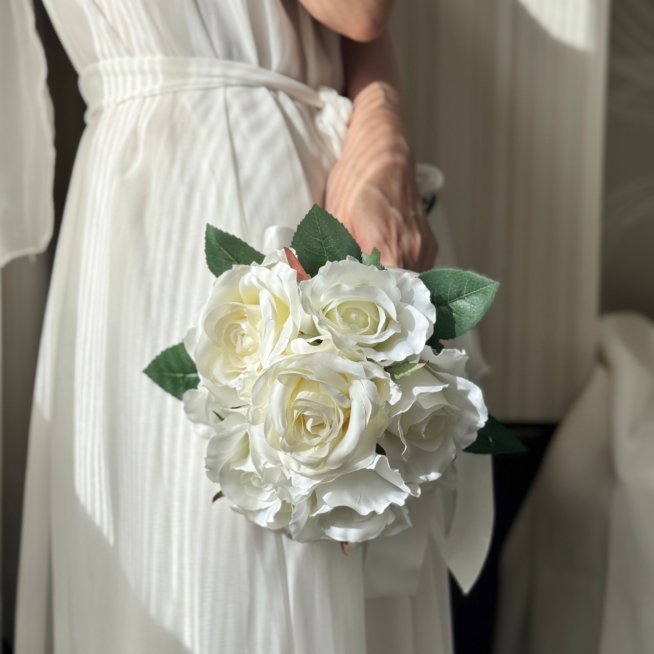 純白ローズだけのシングルラウンドブーケ - 商品詳細 造花ウェディングブーケの通販 フランネリカ。