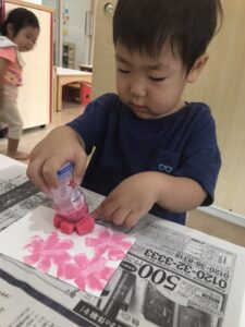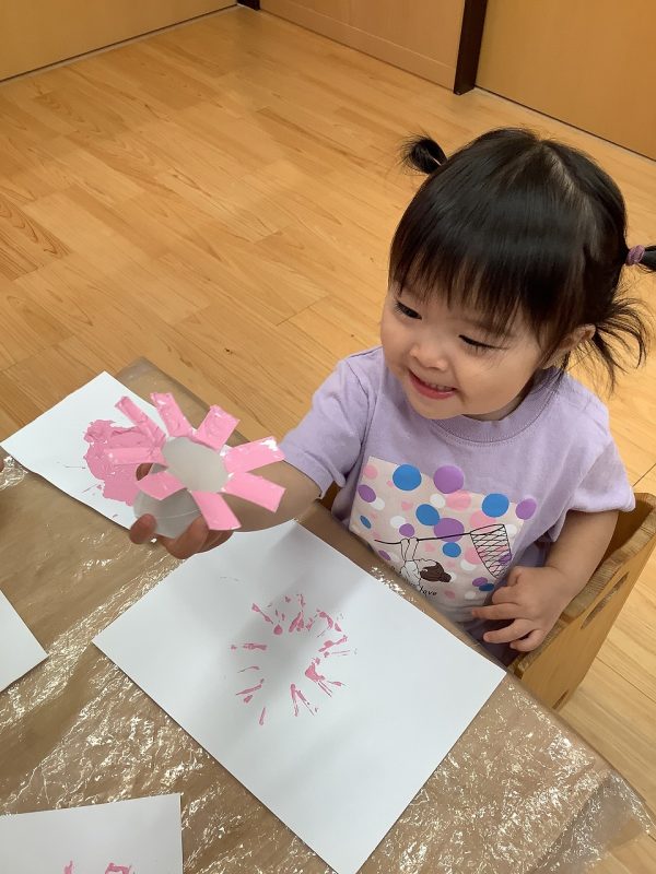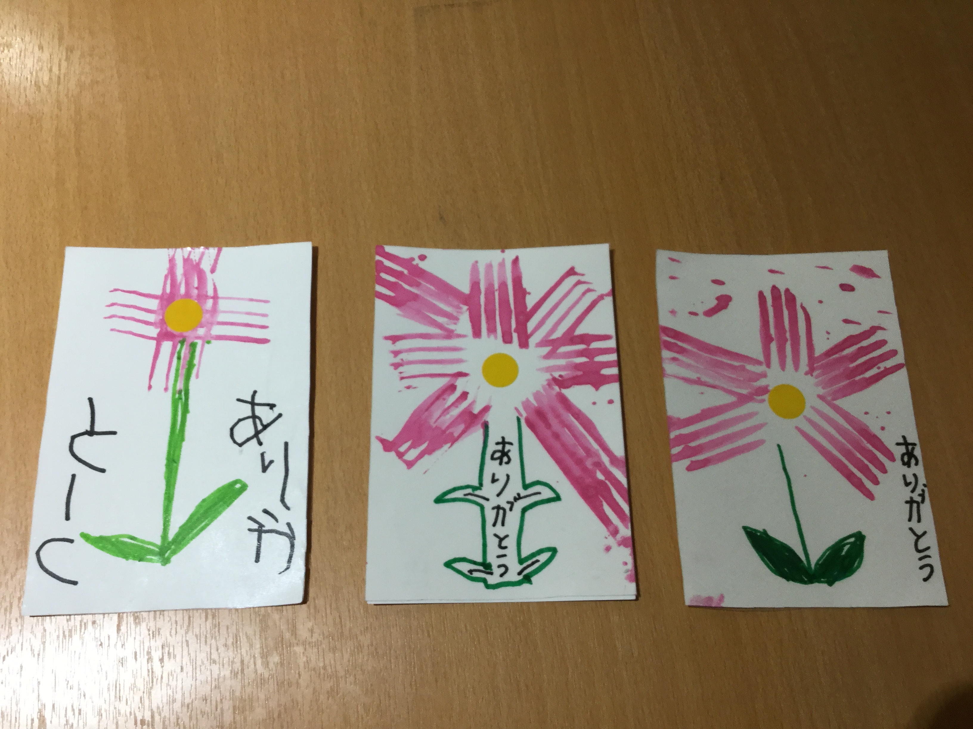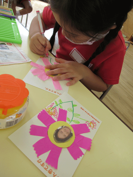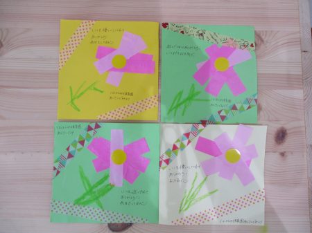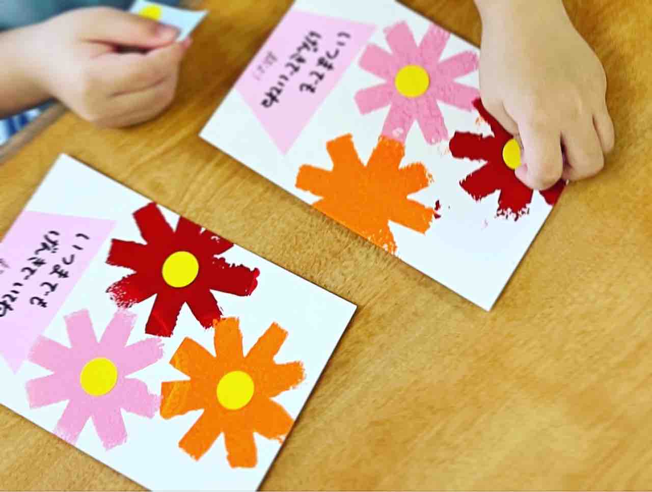 敬老の日製作!コスモスはがき作り3歳児クラス - くじら保育園 天王寺園。