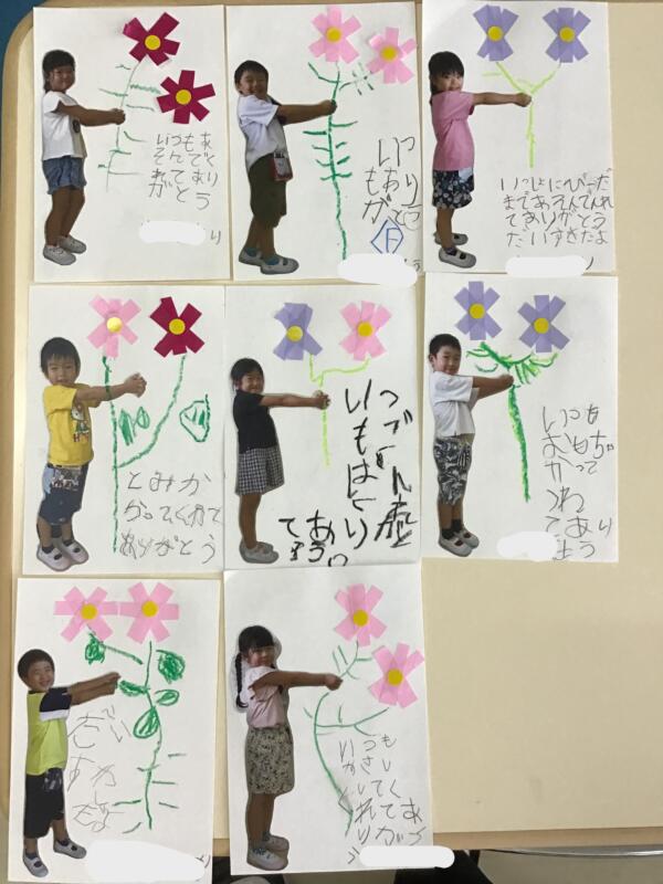 敬老の日のはがき製作にじいろ保育園ブログ。