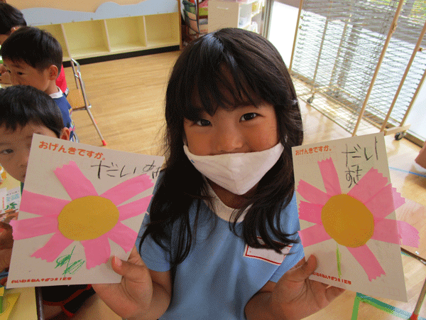 だいち、そよかぜ組 敬老の日のはがき製作にじいろ保育園ブログ。